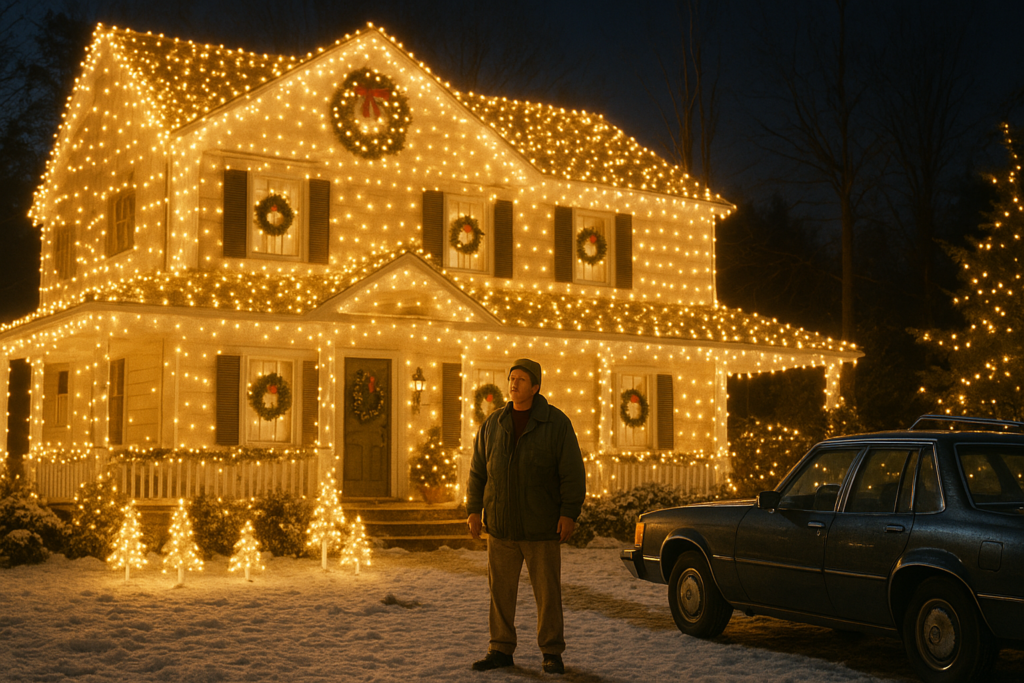 あらすじ:家族のために最高のクリスマスを用意したい父クラークは、イルミネーションの電飾から七面鳥の準備、親戚の招待まで気合い十分。しかし、電気系トラブル、親族バトル、予期せぬニュースが一気に押し寄せ、理想のプランはあらゆる方向から崩壊していきます。